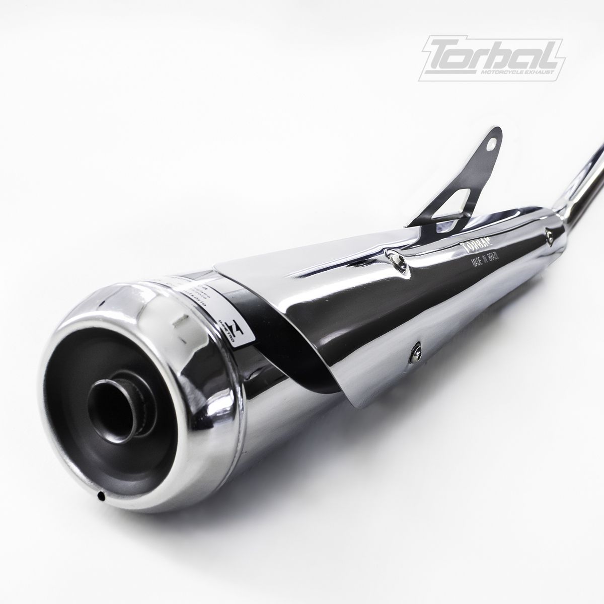 Descrição: Fabricado em aço-carbono. Escapamento completo: Contém abafador interno e capa de proteção. Pronto para instalação.